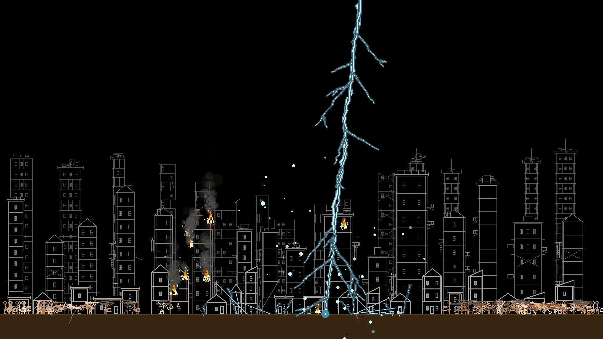 Skybreaker: Rebuild Protocol is a chaotic sandbox destruction game where you unleash catastrophic forces from the sky while stick figure survivors desperately try to rebuild and endure.