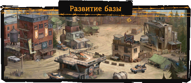 Развивай базу выживших, чтобы получить улучшения. Прокачивай наемников в тренировочном центре, нанимай новых головорезов в здании рекрутов, а также модифицируй оружие и броню в мастерской. Улучшенные строения увеличивают шансы на спасение.